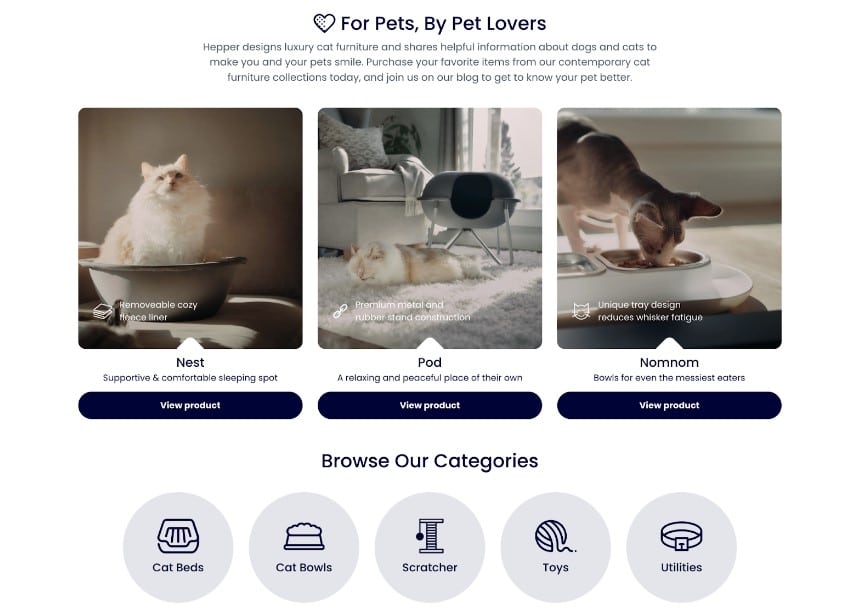 Hepper does this very well on their homepage. While there are numerous CTAs to click on, there is enough room between them, even on a mobile screen. Every button is easy to reach, and while they all look alike, they can’t be confused with each other because the surrounding elements make it clear what section of the website you are about to browse.